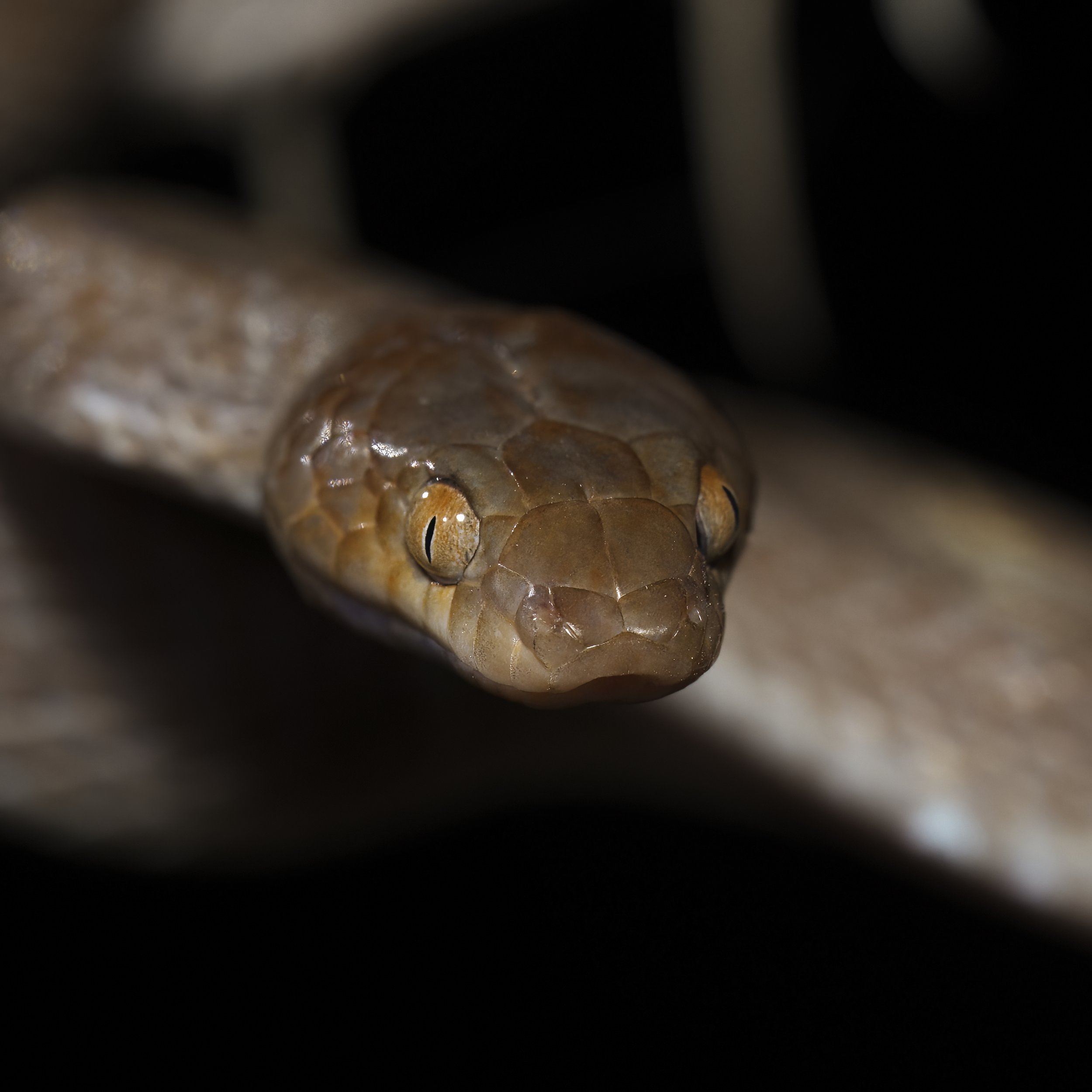 The Arabian cat snake (Telescopus dhara), is a nocturnal, rear‑fanged colubrid found throughout Arabia and the Hajar Mountains of the UAE. It preys primarily on lizards, small rodents, and even nesting birds, injecting a primarily neurotoxic venom through its enlarged posterior fangs. While this venom is potent enough to immobilize its prey the Arabian cat snake in particular possesses relatively large venom glands and toxicity comparable to some death‑adders—it is delivered inefficiently in humans and generally produces only mild local effects; however, allergic reactions remain a possibility, so caution is always advised when handling these snakes Wikipedia.