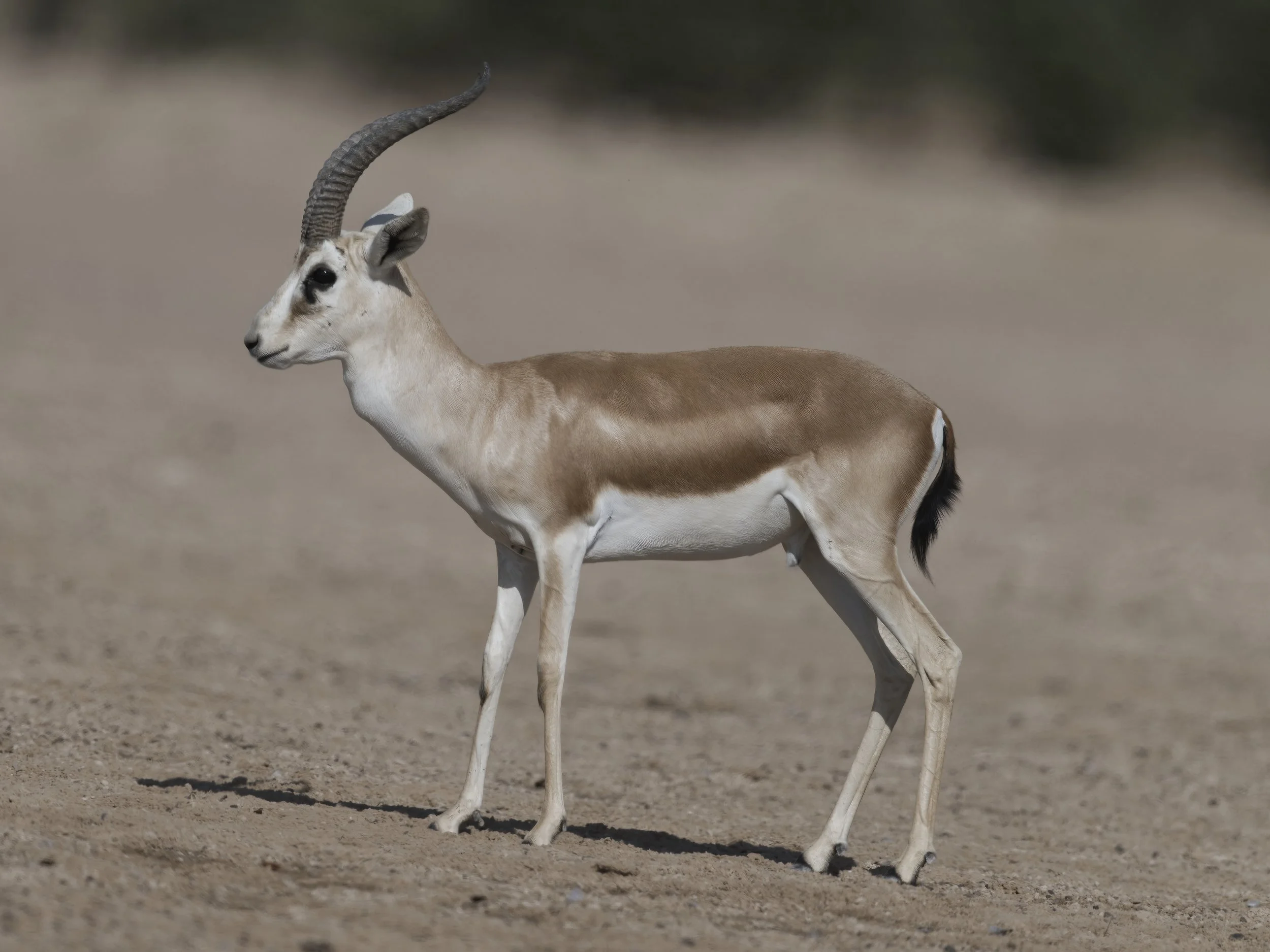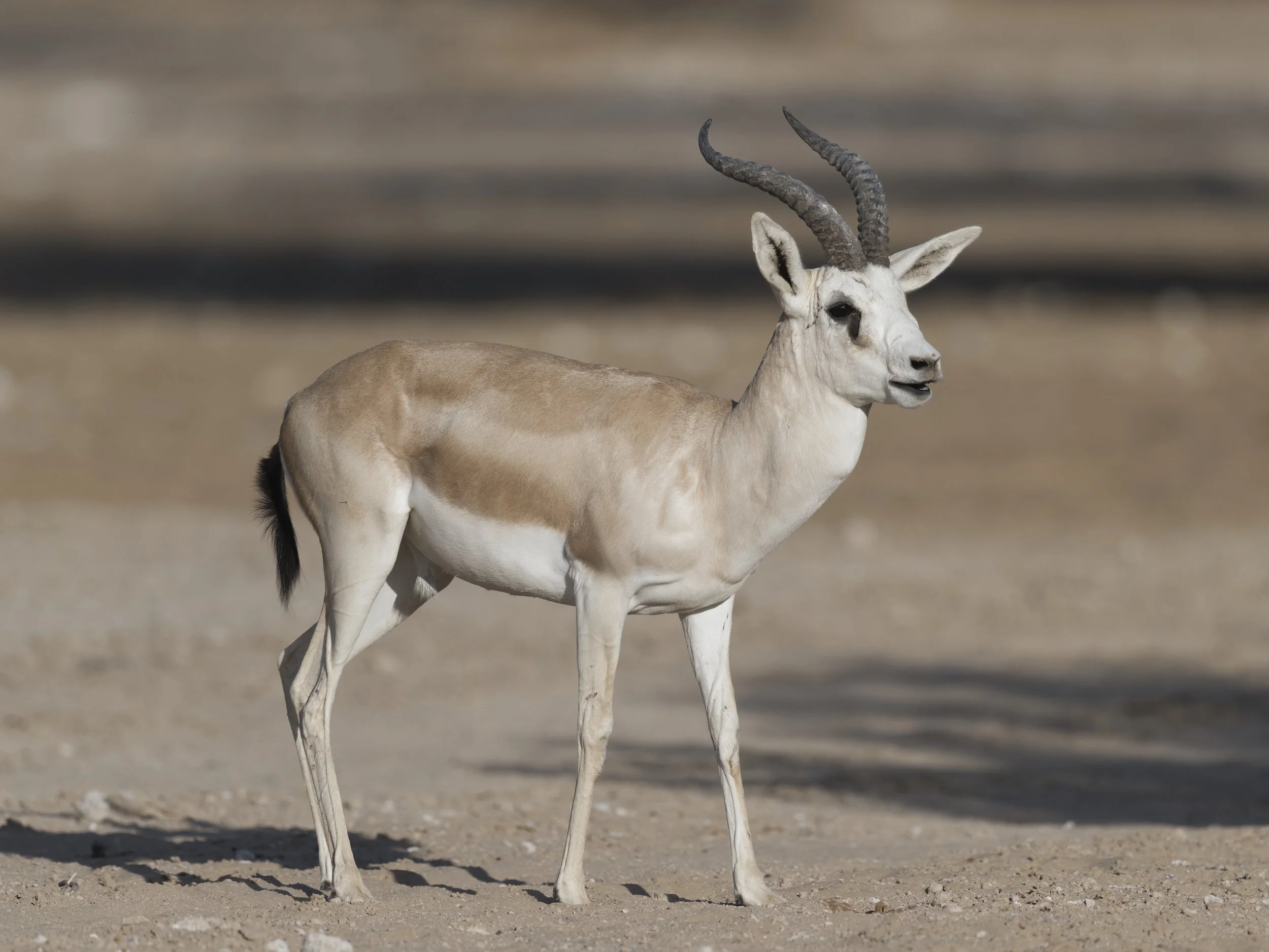 The Rhim Gazelle \ Arabian Sand Gazelle (Gazella marica), is a graceful and endangered species native to the arid deserts of North Africa. Adapted to extreme environments, it has pale sand-colored fur that reflects sunlight and helps it blend seamlessly into its surroundings. Its long, slender horns curve gently backward, and its large eyes are well-suited for low-light conditions. The Rhim Gazelle is highly adapted to desert life, obtaining most of its water from the moisture in the plants it consumes and being able to survive without direct water sources for extended periods. Unfortunately, habitat loss and poaching have significantly reduced its population, making conservation efforts critical for its survival. This elegant gazelle is a symbol of resilience in one of the harshest habitats on Earth.