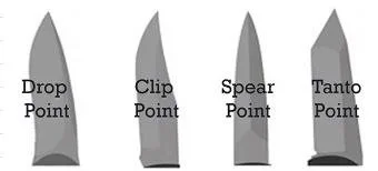 Clip Point: Good for detailed work, has a sharp point for piercing.