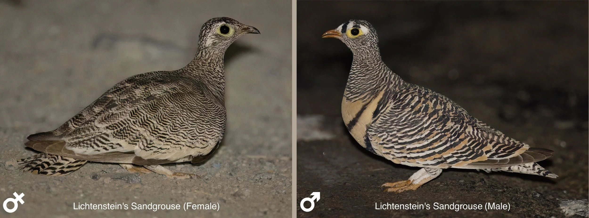 Lichtenstein's Sandgrouse — photographed after being spotted in an area I know very well. Since I expected the session to take place at night, I relied on my prior experience with nocturnal wildlife photography, which made planning and preparation smooth and efficient.