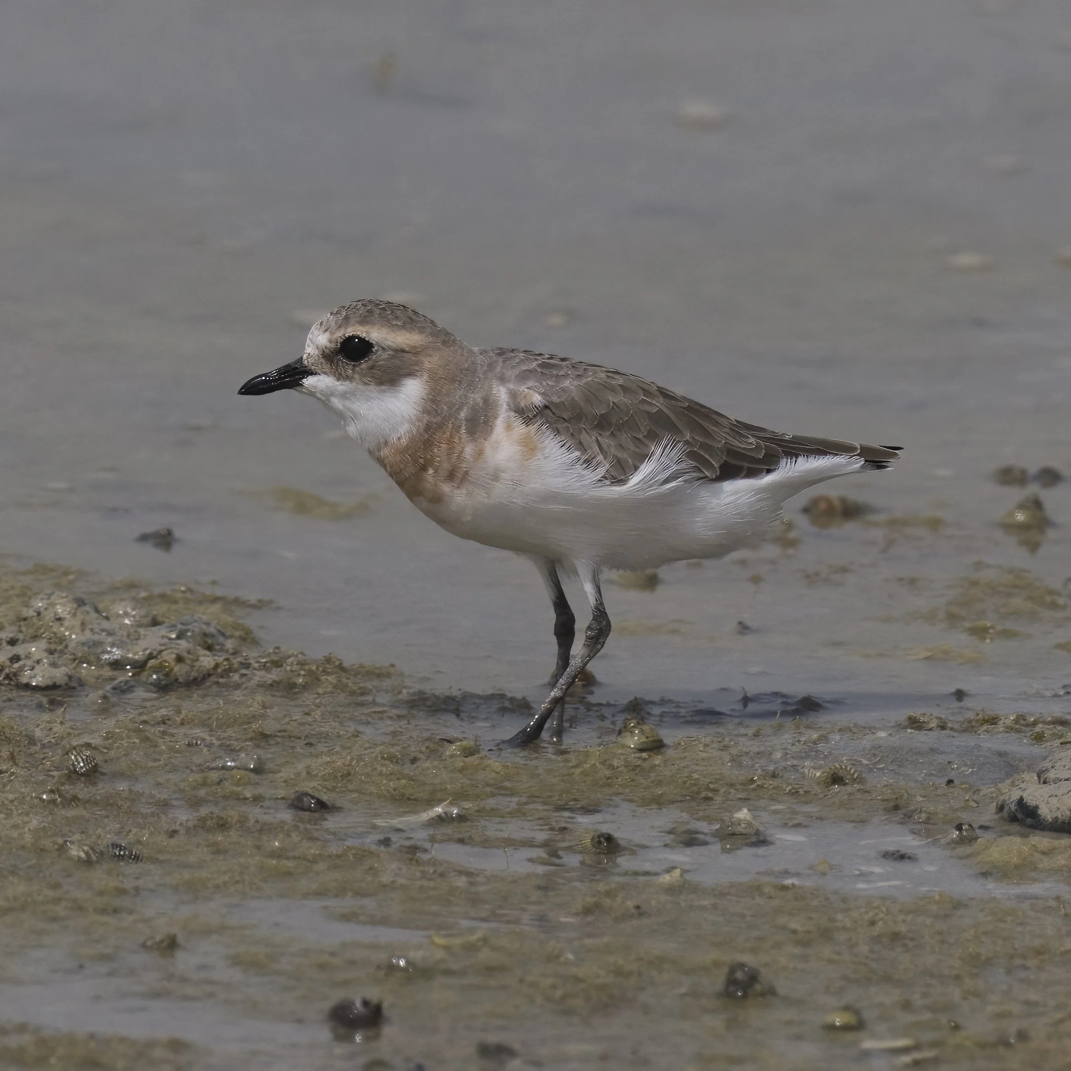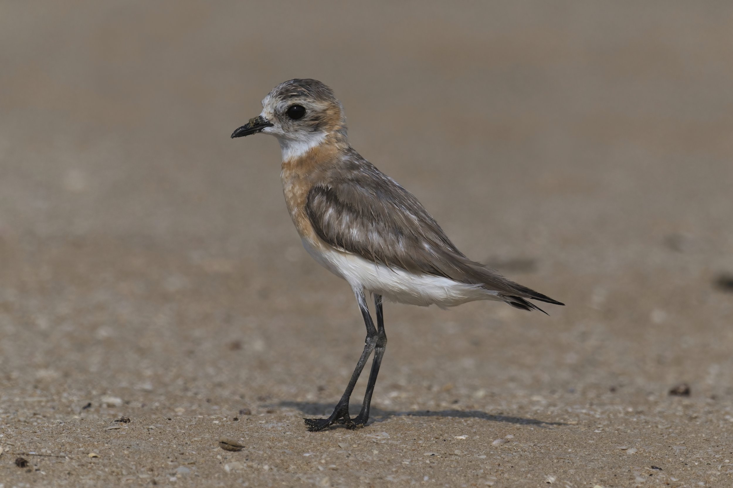 The Greater Sandplover is a medium-sized shorebird that frequents coastal mudflats, sandy beaches, and tidal flats across the UAE during migration and winter. With its long legs, relatively large bill, and swift movements, it's well adapted to foraging in intertidal zones where it feeds on small invertebrates. Though often seen in mixed flocks with other waders, its distinct features and upright posture make it stand out. During breeding season, which occurs outside the UAE, it develops a rich rufous breast band and striking plumage, contrasting with its more subtle non-breeding look typically seen in the region. The presence of the Greater Sandplover in the UAE's coastal ecosystems highlights the importance of these habitats for migratory shorebirds traveling across continents.