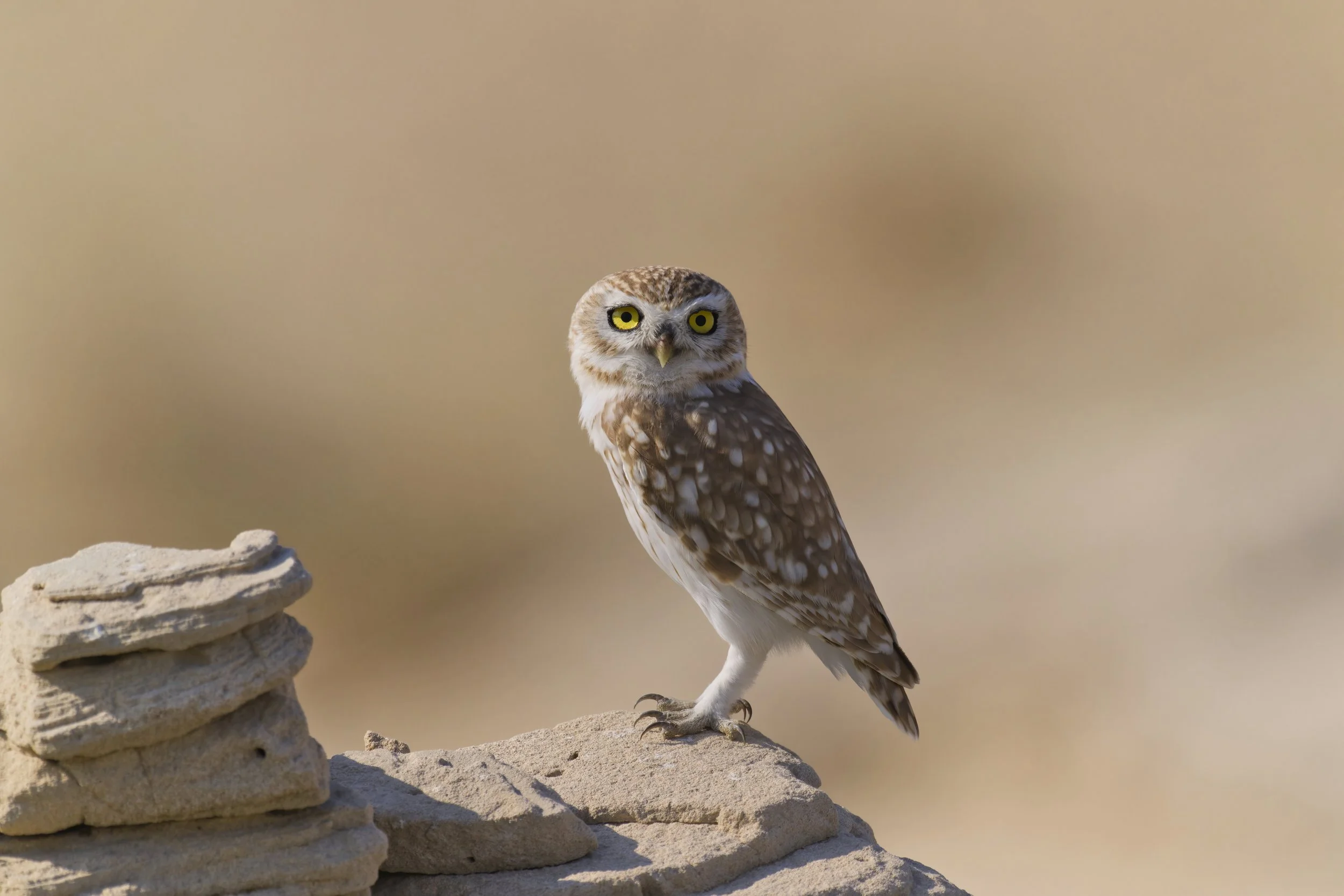 With a distinctive appearance featuring a prominent facial disk, bright yellow eyes, and brown-and-white speckled plumage, little owls are native to Europe, Asia, and North Africa. Their adaptability allows them to thrive in various environments, including farmlands, orchards, and suburban areas. Utilizing their keen vision and sharp talons, they predominantly hunt for insects, small mammals, and birds during the night. Whether perched on fence posts or low branches, these nocturnal hunters contribute to the fascinating diversity of the avian world.