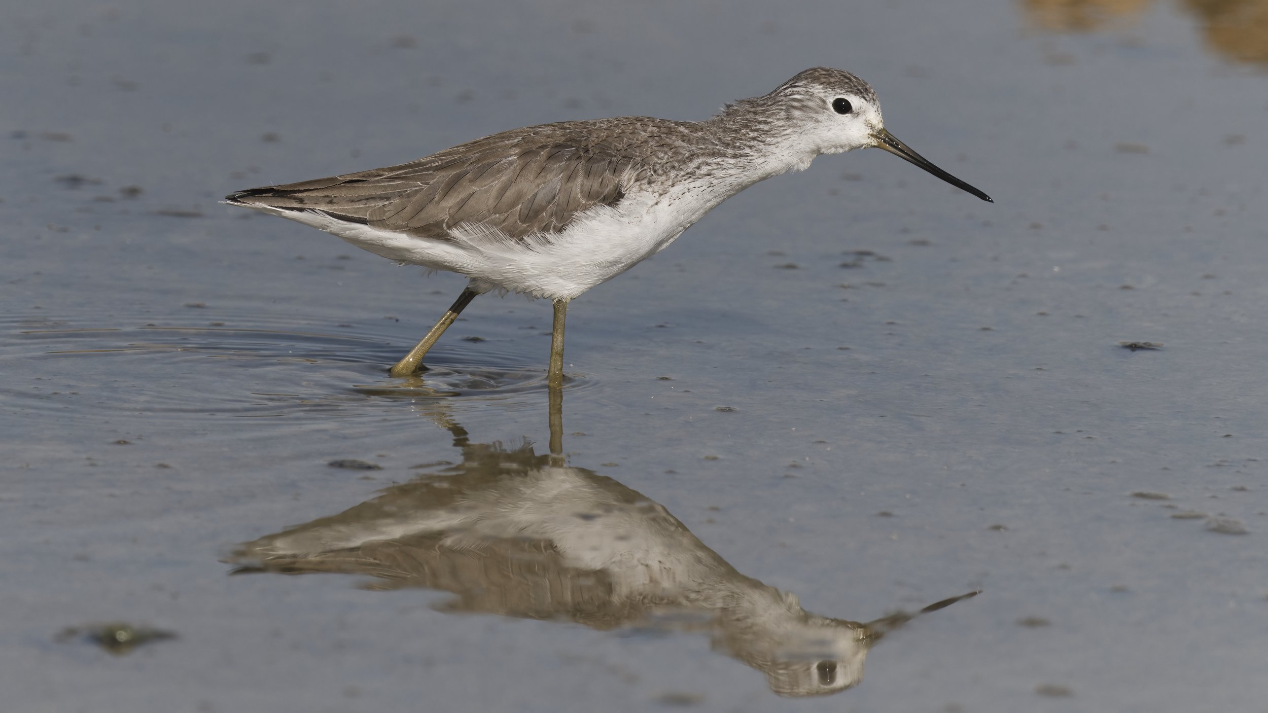 The Marsh Sandpiper (Tringa stagnatilis) is a slender, long-legged wader that migrates through the UAE, primarily during spring and autumn, with some individuals overwintering in the region. Preferring shallow wetlands, mudflats, and the edges of lakes and lagoons, it is often seen foraging in small groups or alongside other waders, picking insects, crustaceans, and small aquatic prey from the water. Its delicate build, fine straight bill, and pale plumage distinguish it from similar species. As a long-distance migrant, the Marsh Sandpiper breeds in central Asia and Russia, traveling south to wintering grounds across Africa, the Middle East, and South Asia.