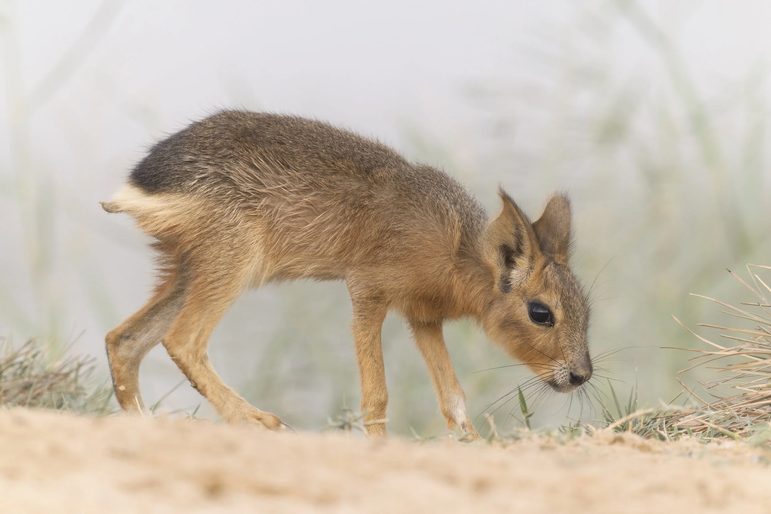 The Patagonian Mara (Dolichotis patagonum) is a unique, rabbit-like rodent native to the open grasslands and shrublands of central and southern Argentina. Characterized by long, slender legs, large eyes, and short, dense fur, Maras are highly adapted for fast running and are known for their ability to sprint to evade predators. These social animals often form monogamous pairs and raise their young communally in large burrows shared with other Maras. Listed as Near Threatened by the IUCN, the Patagonian Mara’s population is declining due to habitat loss from agricultural expansion and livestock grazing, which fragment their range and reduce their natural food sources. Conservation of the Mara’s native habitat is critical, as this species plays an important ecological role in the Patagonian ecosystem, influencing plant communities through grazing.