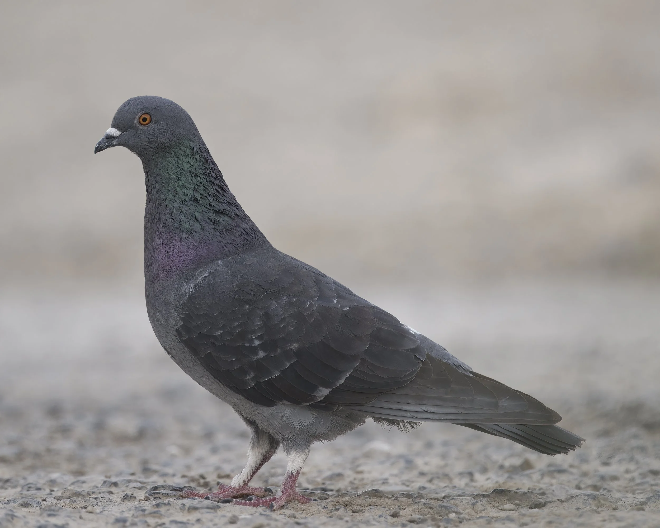 The Rock Dove (Columba livia), also known as the Rock Pigeon, is a widespread and adaptable bird found across urban areas, cliffs, and rocky habitats. Native to Europe, North Africa, and Western Asia, it has since spread globally due to domestication and urbanization. Known for its characteristic bluish-gray plumage with two black wing bars, the species exhibits a remarkable range of color variations due to genetic diversity and interbreeding with feral pigeons. Rock Doves are resilient and social birds, often seen foraging in flocks, feeding on seeds, grains, and human food scraps. Their long history with humans includes use in messaging, racing, and religious symbolism, reflecting their deep cultural significance.